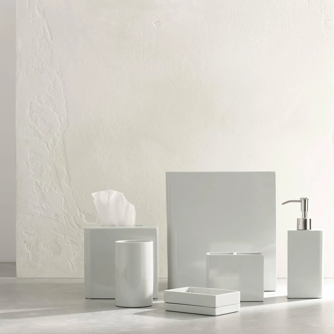 Collection Available in a: Cotton Jar, Lotion Dispenser, Soap Dish, Tissue Box, Tray, Tumbler, Waste Basket