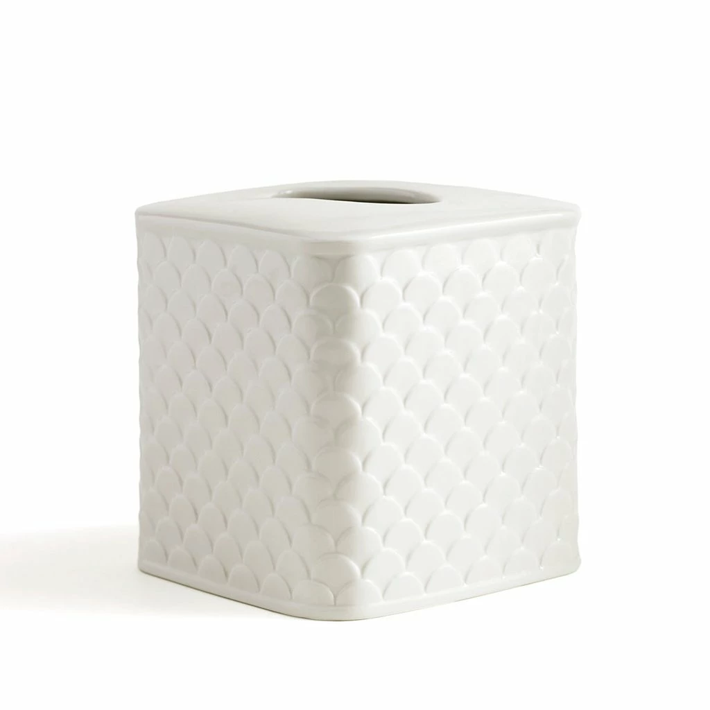 Crafted from finely embossed porcelain, these accessories bring aquatic-inspired style to the bathroom with the elegant scale patterns of each accessory.