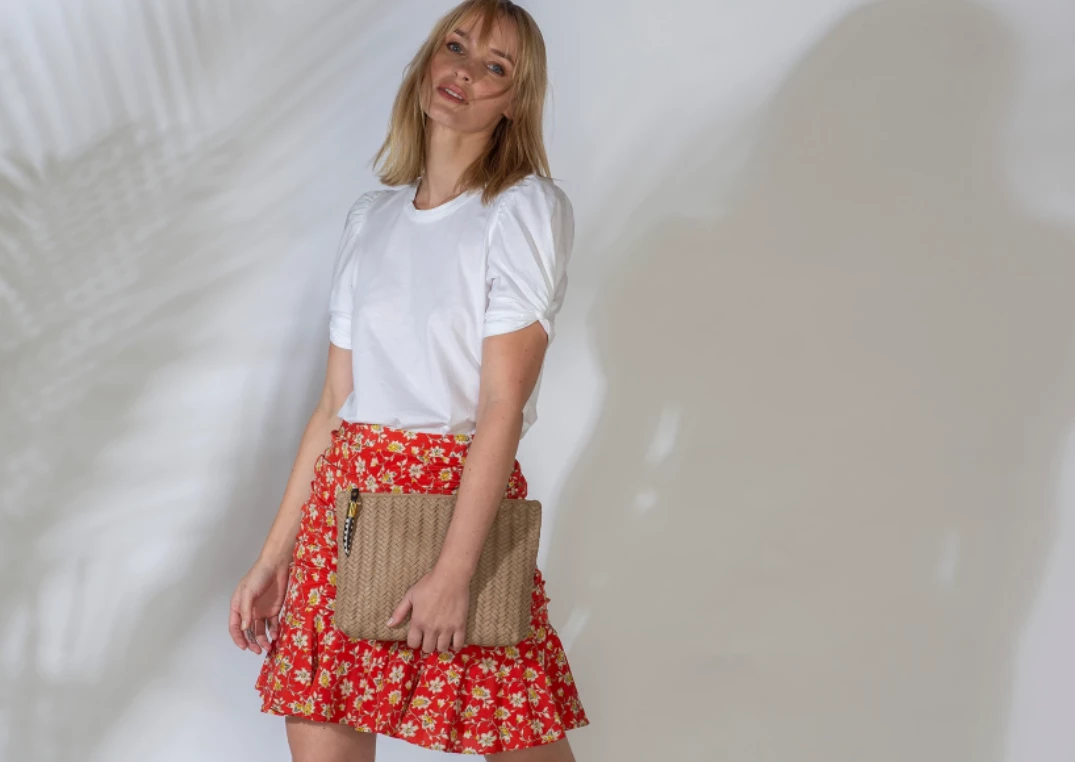 Un-be-weave-able! This absolutely fabulous medium pouch, featuring a striking handwoven leather front, in super pretty blush colour, with a soft blush leather back is the real deal! Finished with our fab upcycled Ankole batik dyed bone toggle, it makes a sophisticated statement as a compact work bag, urban chic evening clutch, or totally terrific travel pouch.