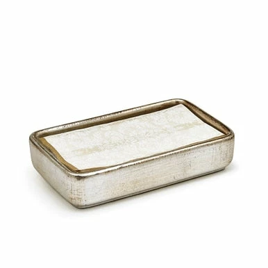 Handcrafted ceramic with the unmistakable glow of genuine silver leaf. Each piece is leafed by hand and lightly brushed with antique glaze. It’s an appealing look that coordinates beautifully with our gilded wood collections and many other styles. Made in Italy.