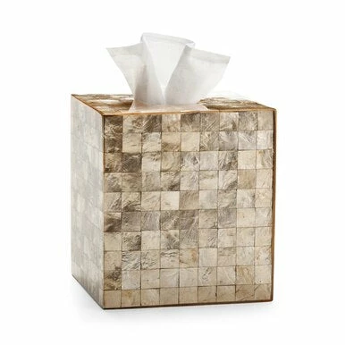 - Capiz Champagne Tissue Cover: 6.00″ x 6.00″ x 6.50″