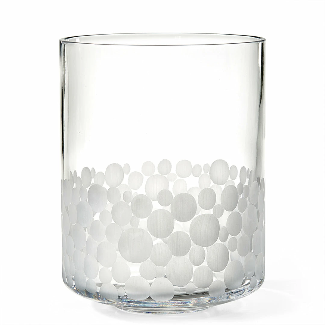 Sparkling fragments of gold and silver leaf are layered on milky-white, mouth-blown glass. The leaf is applied to the molten glass in tiny dabs that expand when each piece is blown. Made In Italy.