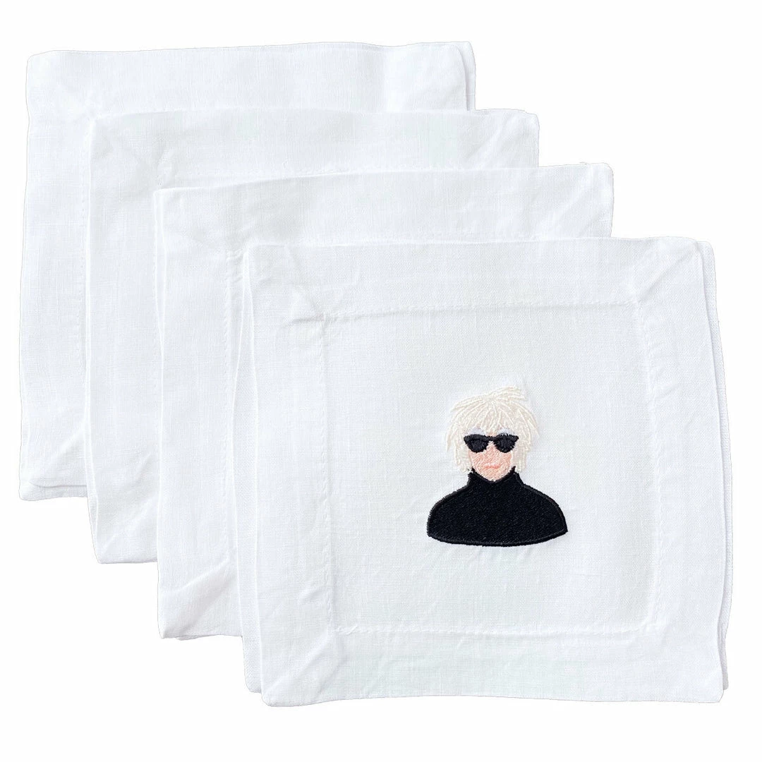 Pop Culture meets embroidery! An ode to our favorite fashion icons in these cocktail napkins. They are perfect for a cocktail party of for a unique gift.