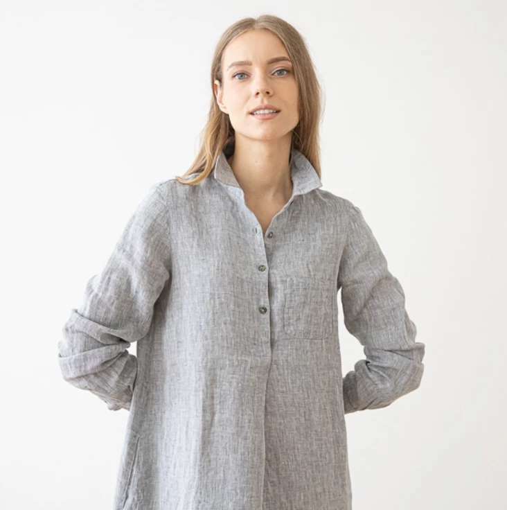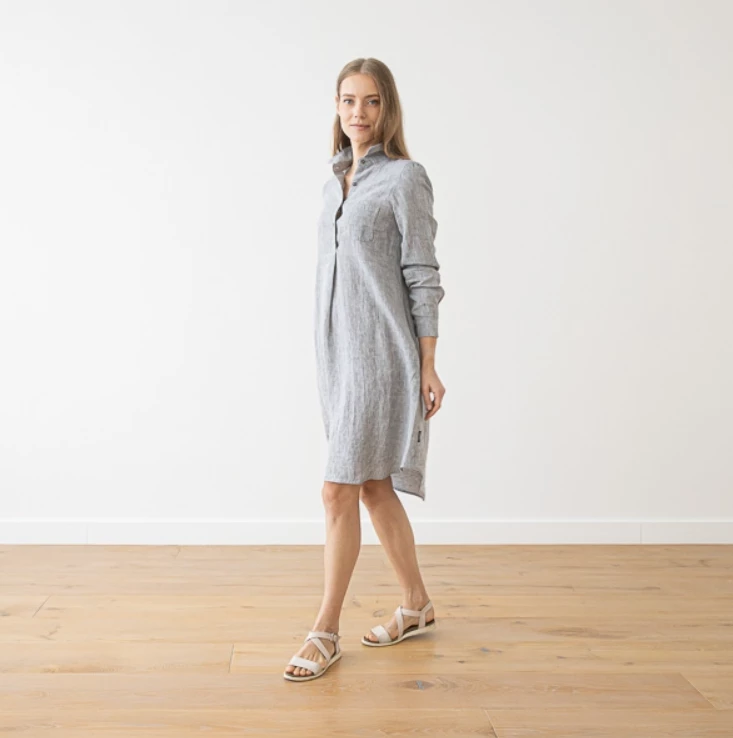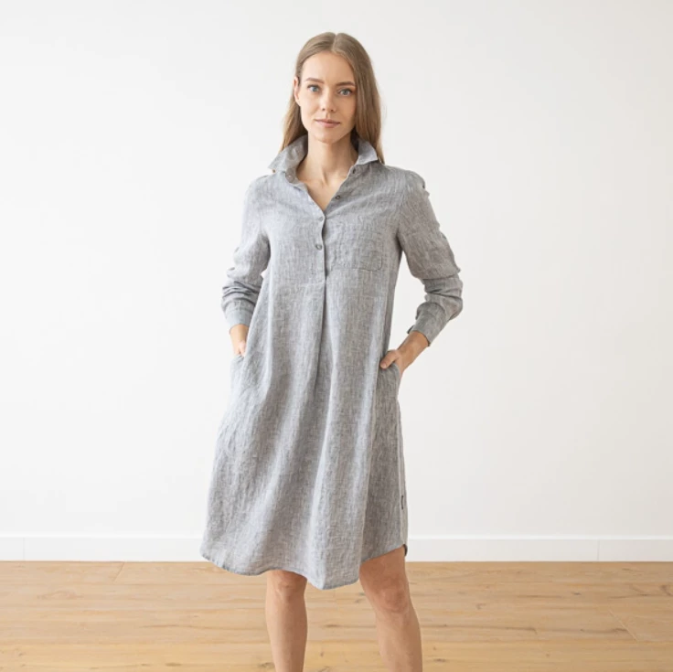If you’re looking for the perfect addition to your spring/summer wardrobe, our Graphite Melange Linen Dress Camilla dress might be just what you’re after. Cut for a loose, easy silhouette that’s effortlessly flattering, this linen shirt dress has delicate buttons, two pockets and subtle gathered detailing on the back and cuffs. It is made-to-order item hand-made individually for you. We would appreciate if you choose your size carefully and help us minimize the returns.