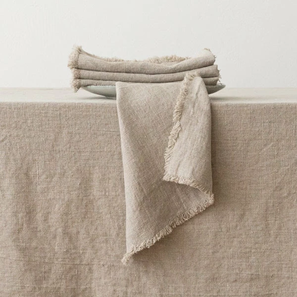 The Terra fringe collection of table linen is crafted from one of our softest linen ever. This exquisite range is heavyweight yet durable, and feels as wonderful as it looks. Prewashed to prevent shrinking and for extra touch appeal, these floaty tablecloths and sumptuous napkins will bring a fresh, ethereal quality to your kitchen or dining room. Finished with playful fringing and boasting the natural slubs and textures of top quality linen. Fabric density is 270 g/m2.