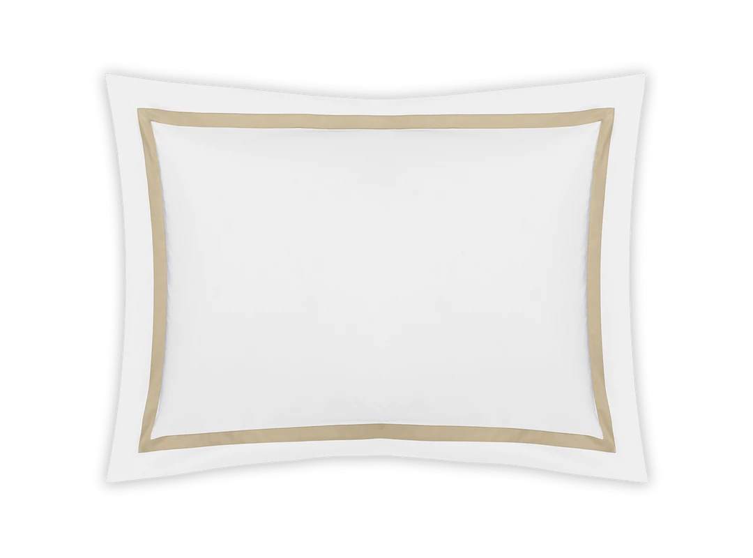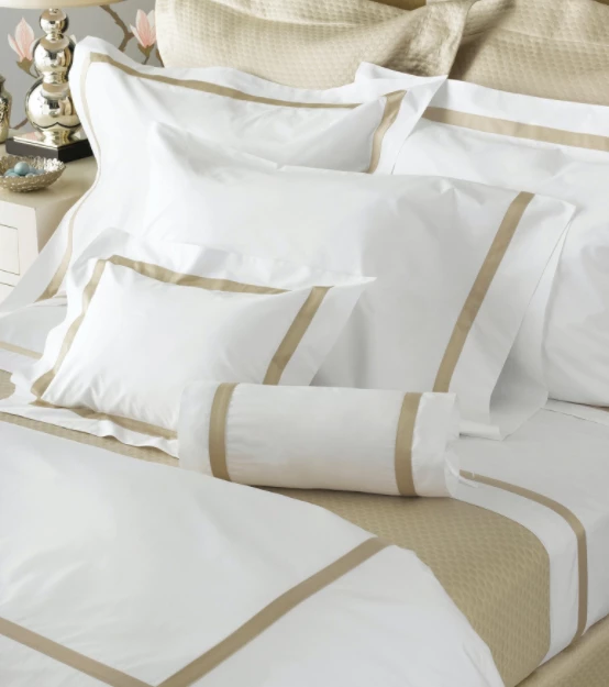 The iconic, best selling style is the elegantly modern bedroom must-have. Our classic 600 thread count Milano Egyptian cotton percale sheeting is smartly adorned with a number one Nocturne sateen tape border in an array of colors – from subtle neutrals to bold bright hues – to capture any look or mood.Â