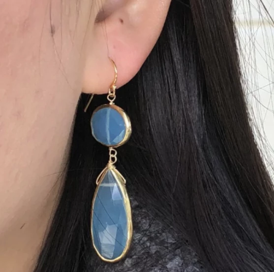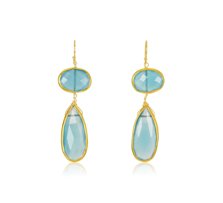 Two stunning pieces of chalcedony join together to form this statement earrings.Â