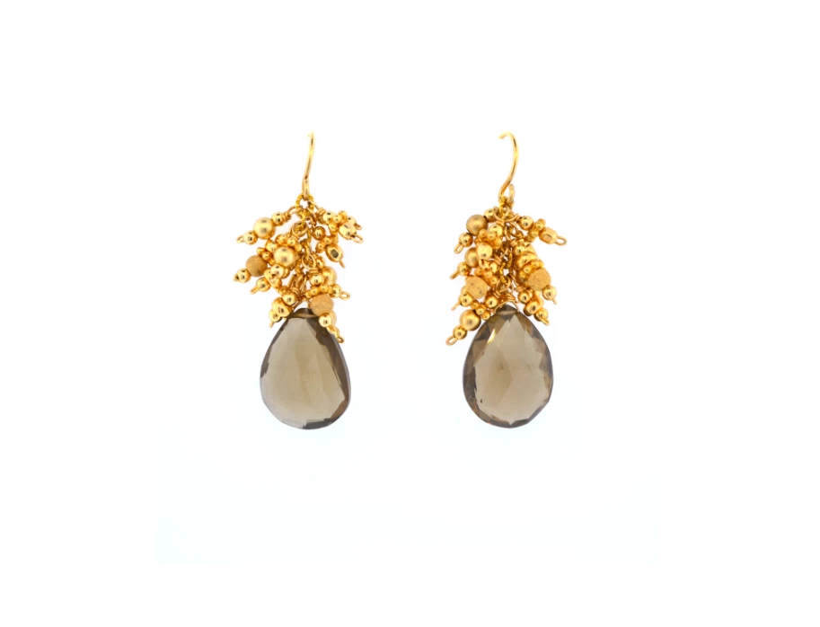 The brilliance of smokey quartz, warmed by a glow of golden, fizzy cluster beads.