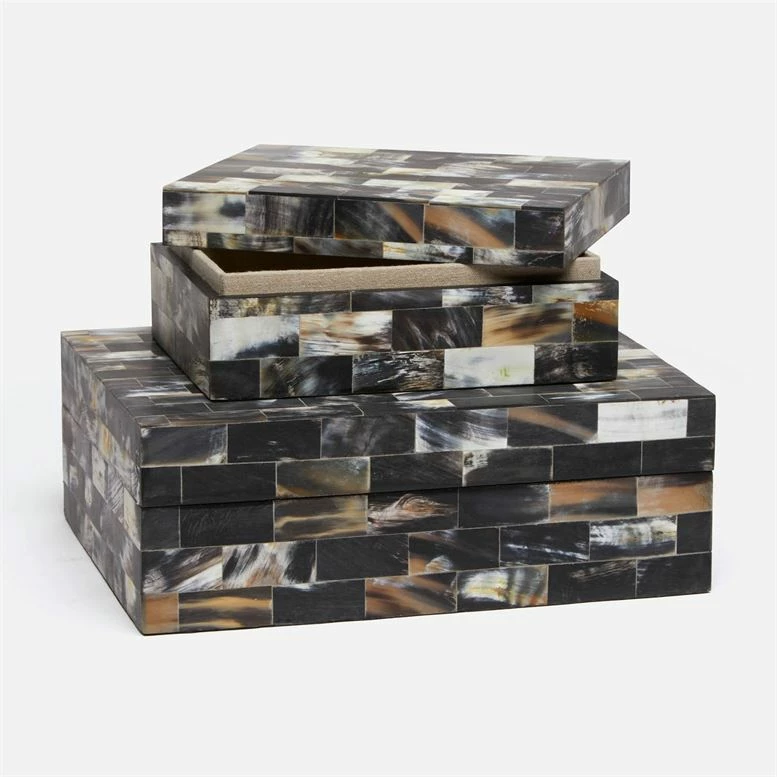 Update your bookshelves or coffee table with this gorgeous box. It is mixed horn with an unpolished matte finish.