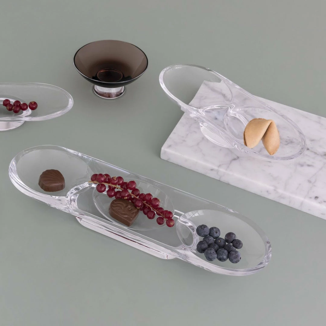 Fusing Danish design with Turkish glassmaking techniques, this compartment tray  uniquely balances contemporary aesthetics with nostalgic silhouettes and minimalist finishes. Cut from clear lead-free crystal, it offers function and style in equal doses and can be paired with other pieces from the series for an exciting table arrangement.