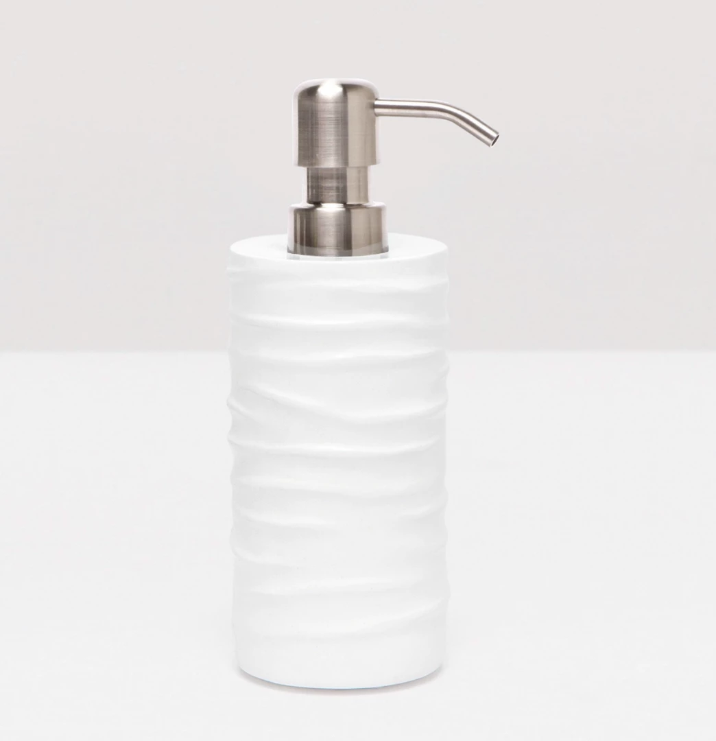 A lacquered white resin with a wave pattern, adds a modern and sophisticated look to your bathroom.