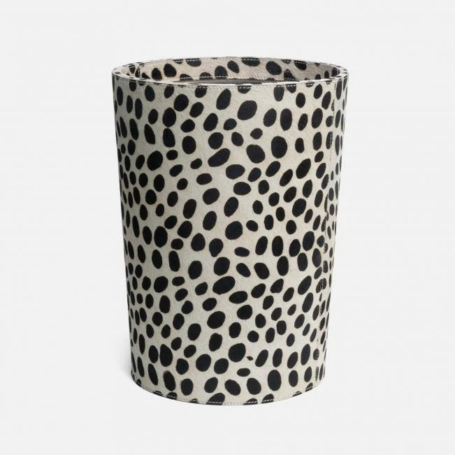Dalmation print hair on hide waste basket brings style to any room.Â