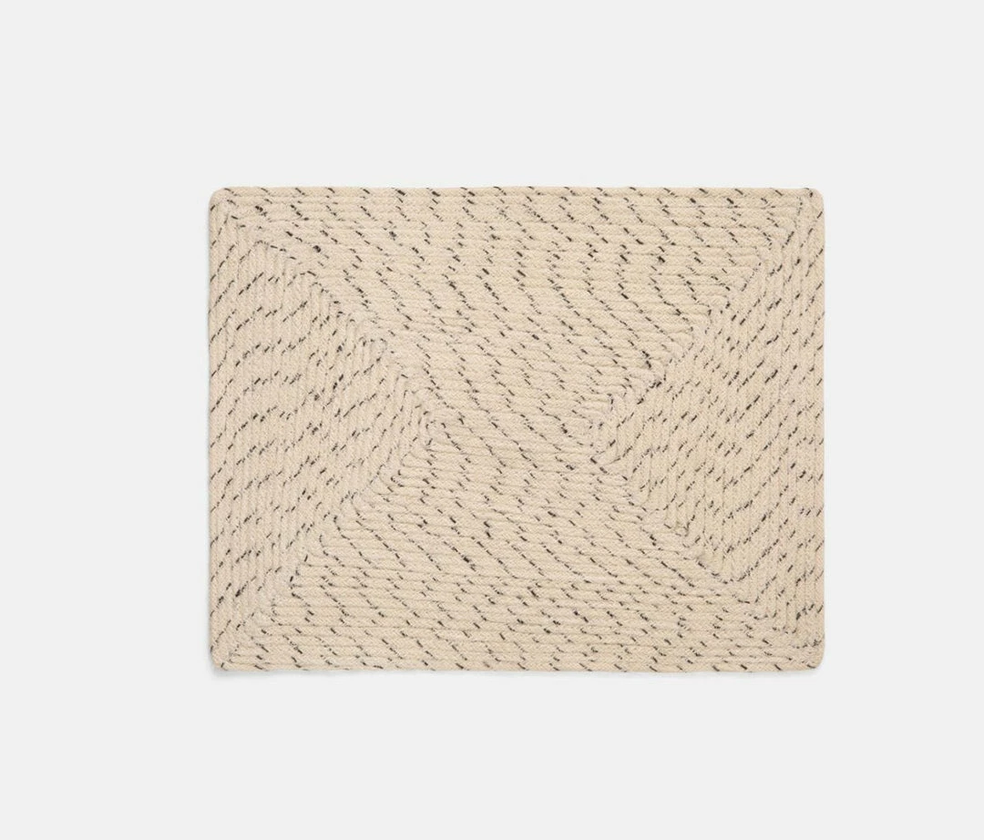 The swirling patterns on these handcrafted jute placements in Speckled White make summertime soirees casually chic.