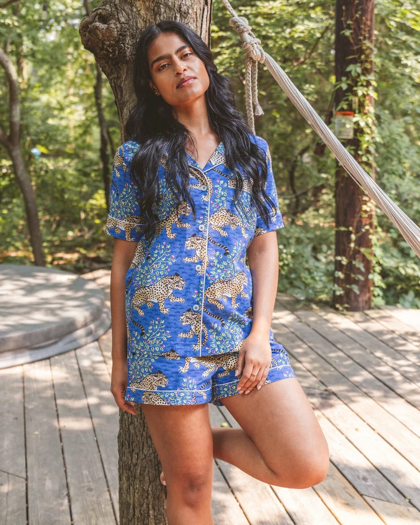 Made with cotton that gets softer with every wash, this short-sleeve top and shorts matching leopard PJ set comes in a range of colors to suit every style and mood. From serene and calming Blush or Indigo to vibrant and earthy Forest and Scarlet, our breathable and lightweight cotton beckons you to let go of the chaos of every day, sit back and unwind.
