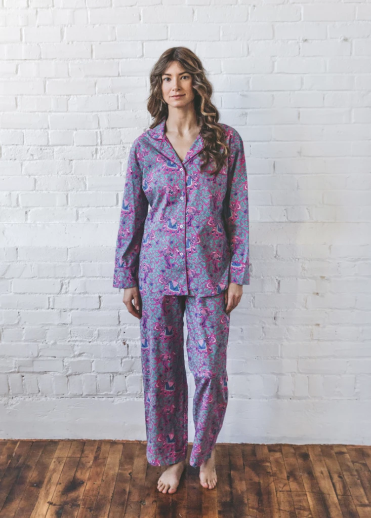 These long pajama sets are sewn from a lightweight, breathable cotton poplin that becomes softer with each wash. They are perfect for lounging around on a lazy Sunday morning or curling up for a cozy evening with a good book.