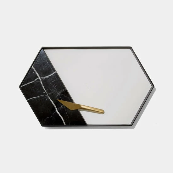 - Includes modular marble tray, silicone mat, melamine base and cheese knife