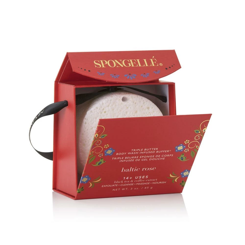 Give your shower a cleansing boost with Spongellé’s triple butter Body Wash Infused Buffer. Formulated with moisturizing cocoa butter, nourishing shea butter and vitamin A-rich mango butter, this All In One Beauty Treatmentwill cleanse, exfoliate, massage and nourish. Enriched with black tea and coffee extract.