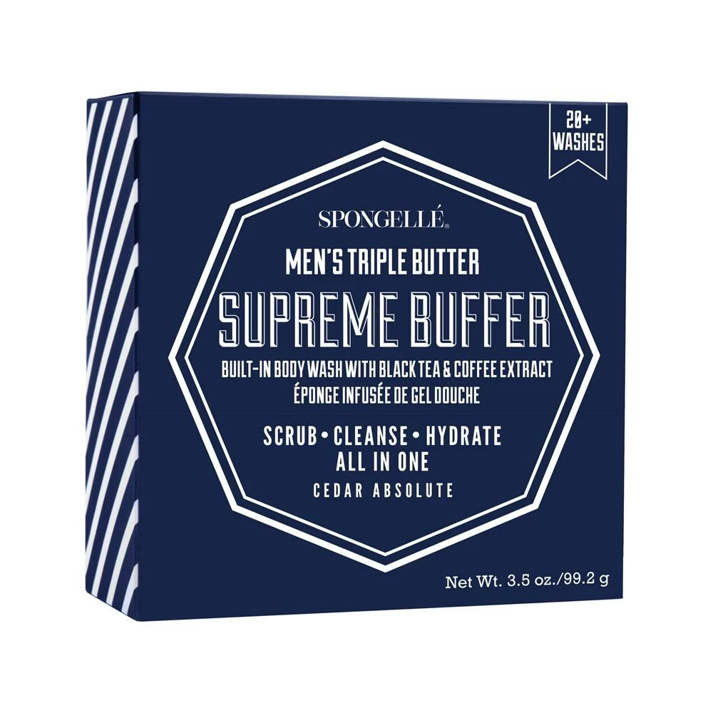 The Men’s Supreme Buffer has a moisture boosting triple butter body wash built-in that will forever change his shower experience. Formulated with moisturizing cocoa butter, nourishing shea butter, and vitamin A enriched mango butter.