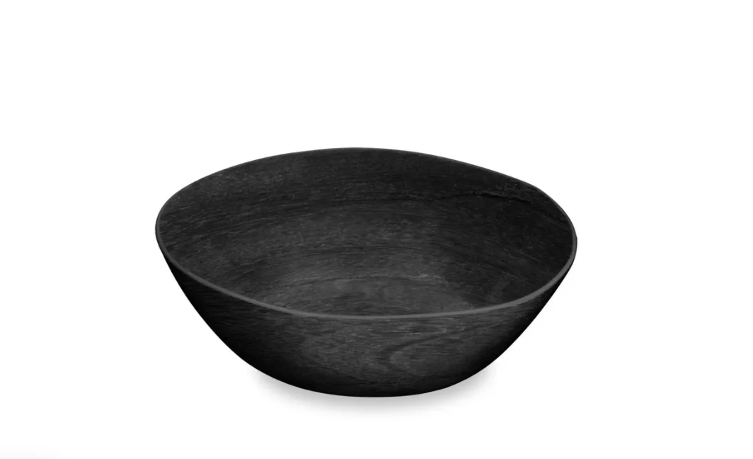 This Serving Bowl features the look of faux blackened wood and organic edge, and is great for indoor or outdoor entertaining.