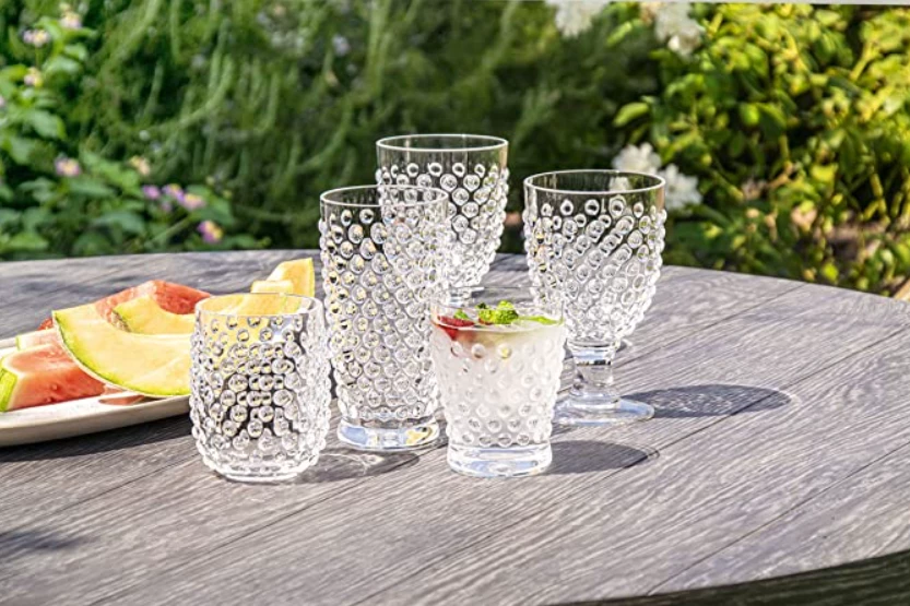 Don’t be afraid to take the party outdoors with this line of worry free drinkware! This Hobnail vintage pressed double old fashioned glass in durable outdoor premium acrylic is perfect for all occasions.Â