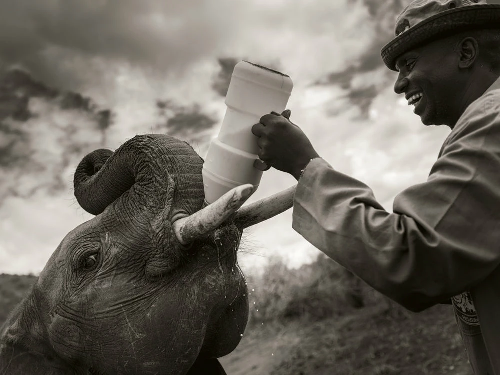 Because elephants are pachyderms, a combination of two Greek roots meaning “thick skin,” one might think that nothing bothers them and that they lead quiet, safe lives. Nothing could be further from the truth: elephants have been hunted and killed for their ivory tusks since antiquity. And people often ignore the calves left behind, who must now live out their lives as traumatized and fearful orphans. Wildlife photographer Joachim Schmeisser made it his mission to document the story of these abandoned baby elephants. Through his sponsorship of elephants, he came into contact with the David Sheldrick Wildlife Trust, the world’s largest and most successful rescue and rehabilitation operation for orphaned elephants, headquartered in Nairobi. Professional veterinary technicians bottle feed the elephant calves until they are old enough to locate their own food. Joachim Schmeisser followed numerous elephants through the entire process and captured fascinating pictures from their arrival at the nursery all the way to their release back into the wild.