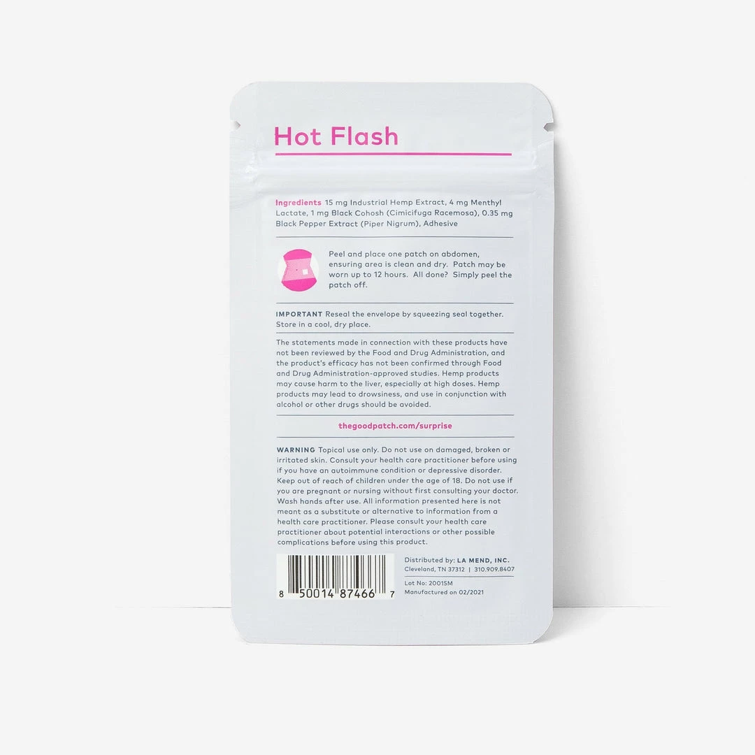Just peel and stick. Is it hot in here? The Hot Flash Patch lets you get back to the fun part of growing up, offering a steady release of Premium Hemp Extract and other key ingredients over 8-12 hours. Just remove the patch when you’re done.