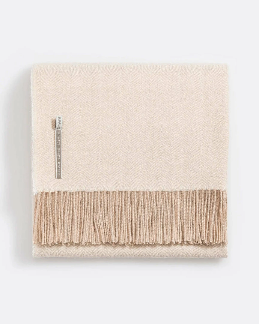 These luxurious throws are woven in a herringbone design from 100% baby alpaca. Extremely soft and warm, yet lightweight, they are also hypoallergenic. Wrap yourself in one for some comfy warmth or simply use it to accent your favorite sofa or settee.Â