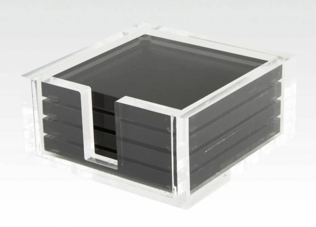 Clear Lucite Holder with 4 Black Lucite Coasters
