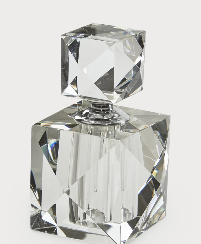 A gorgeous diamond cut perfume bottle, perfect on your vanity or dresser. Â