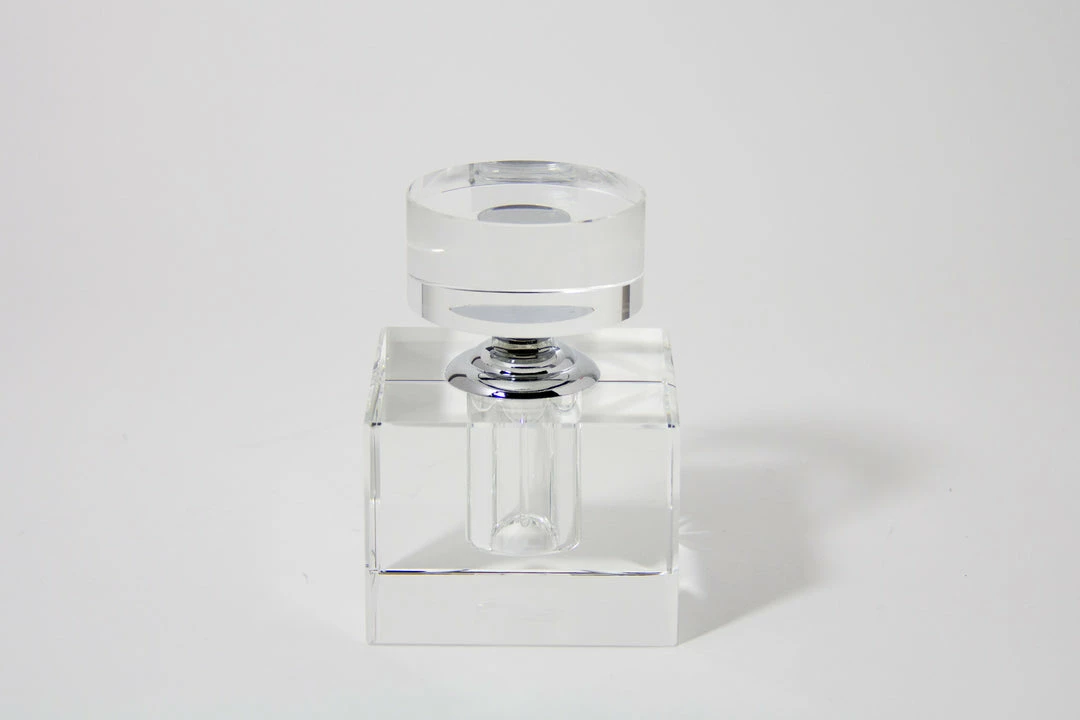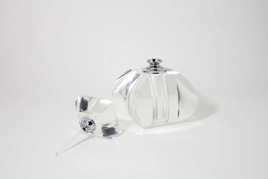 Modern Morocco-inspired perfume bottle. Beautiful, yet functional, contemporary, yet classic. Â This charming perfume bottle makes an excellent gift. clear glass, excellent gift.